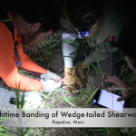 Kapalua, Maui– A group of volunteers, led by staff from the Maui Nui Seabird Recovery Project, banded 150 adult wedge-tailed shearwaters at a Kapalua colony in West Maui last night. Spring nighttime efforts to capture returning adults to look for banded birds recruiting into the breeding population began in 2008. Additionally unbanded adults are banded during the project.