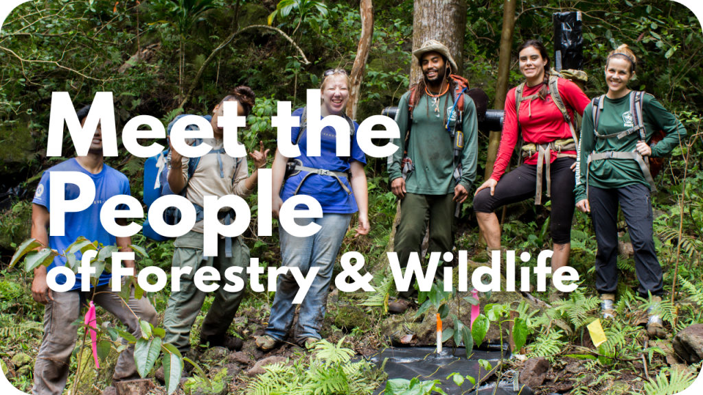 Who works at Forestry and Wildlife, and why do they choose to work here? Our staff are just like you: they’re people who care about Hawai‘i and are trying to help maintain and enhance the natural resources that make Hawai‘i a special place. If you’re interested in interning or working with us, or you’re just curious about what we do, watch the videos below to meet some our staff, hear about their work, why they do it, and their advice to anyone considering working in this field. You can learn more on our About Us page.