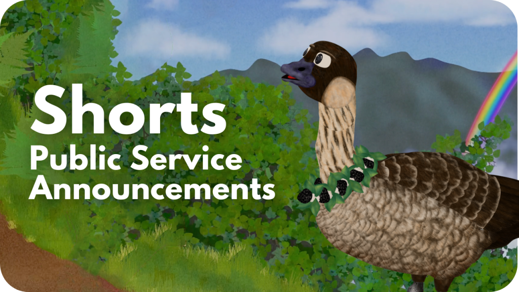 Learn about important topics and how to safely enjoy nature in Hawaiʻi. Our Be Pono Outdoors PSAs feature our mascot, Pono the Nēnē. You can learn more on our Be Pono Outdoors webpage.