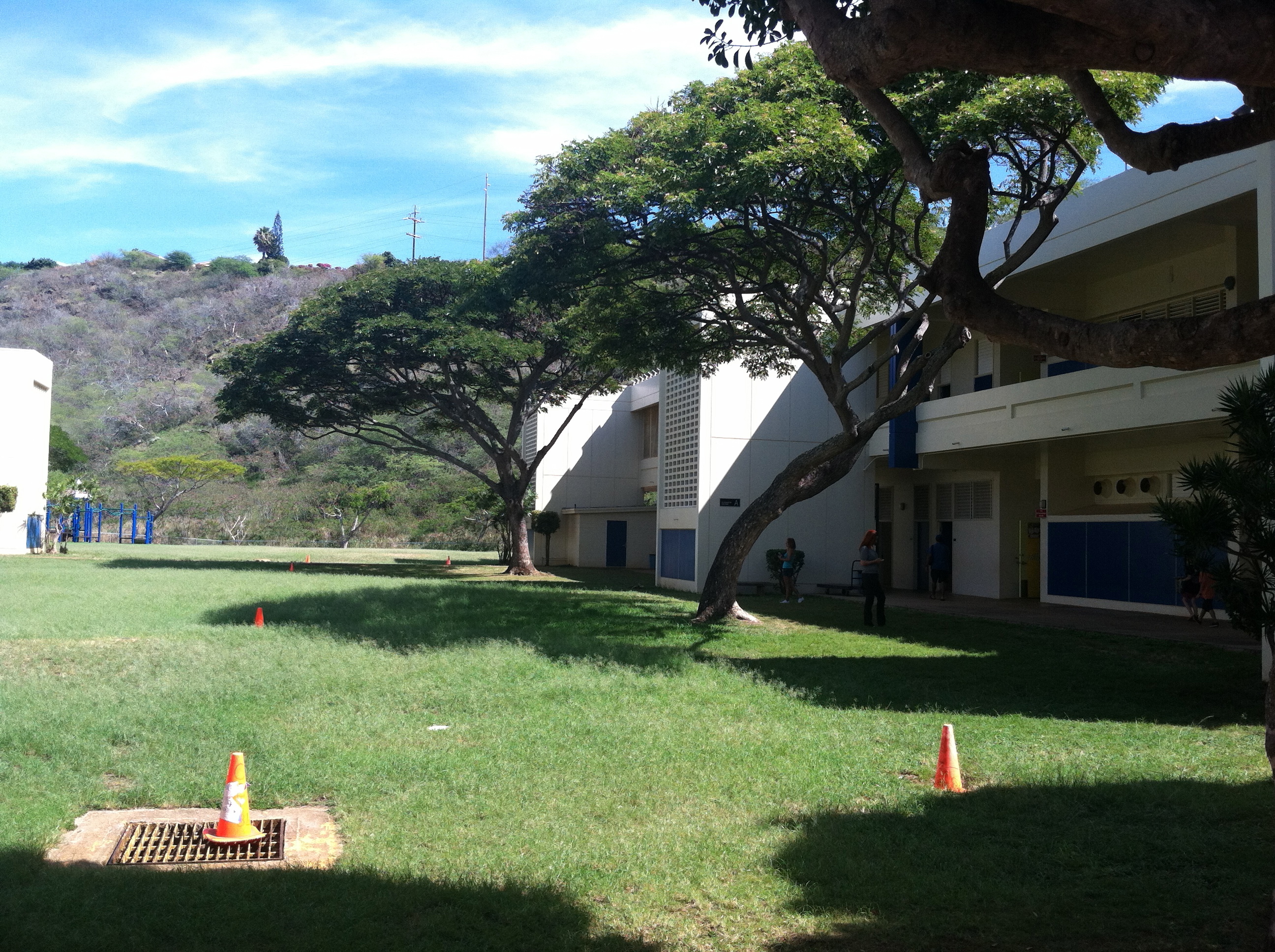 Classroom air temperatures have become a valid point of concern for teachers in Hawai`i with some classroom temperatures reaching the high 90’s. Almost any sunny day you can drive by a school and if students are outside they are often congregated under the cool shade of a tree. Schools, with proper planning, can make use of nature’s own “air conditioner” – trees!
