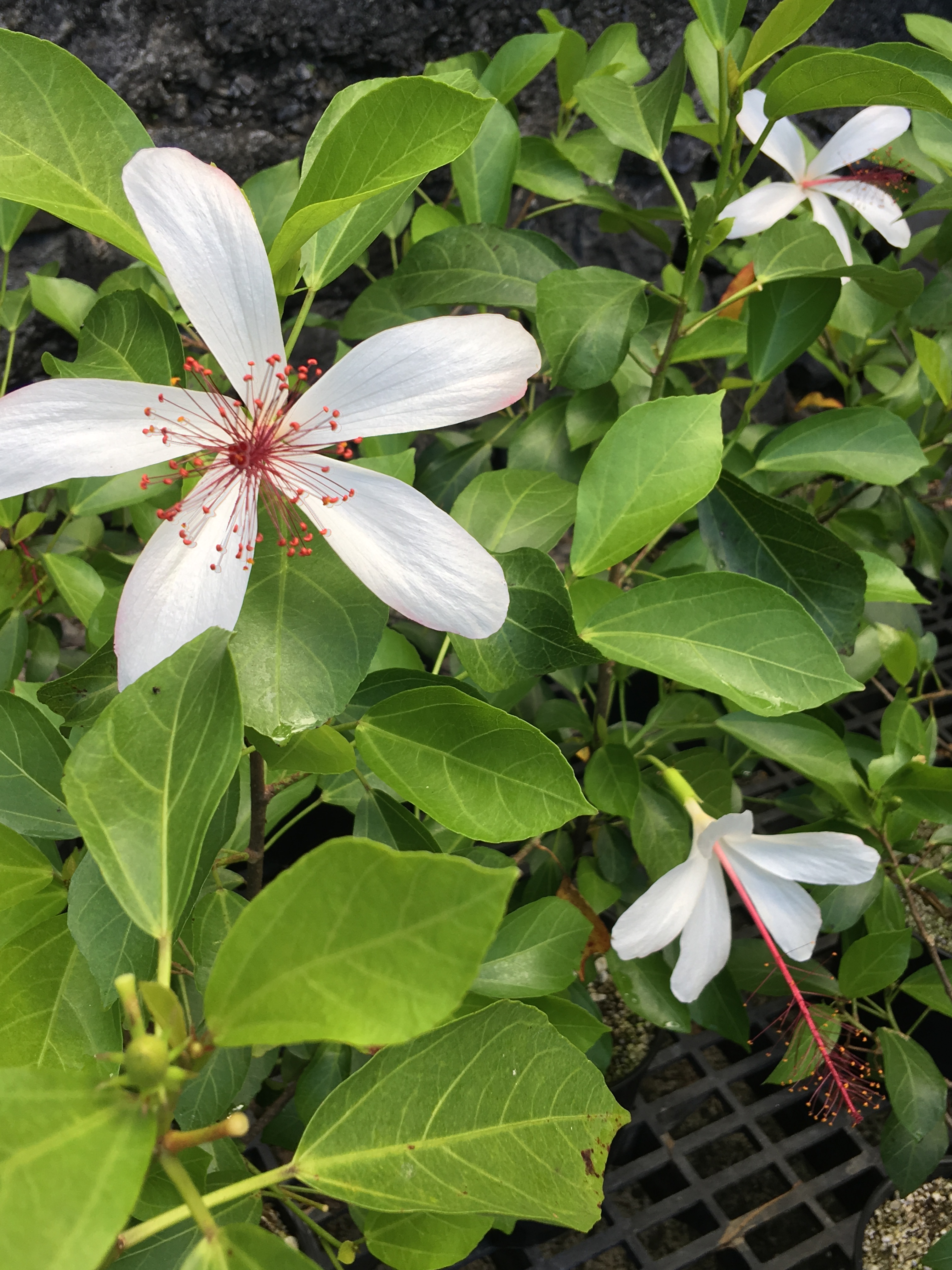Native plant fans can find 4 in. – 1 gallon standard pot sized white hibiscus, ‘a‘ali‘i, red ‘ohi‘a, ukiuki, native grasses and sedges, as well as red ti.