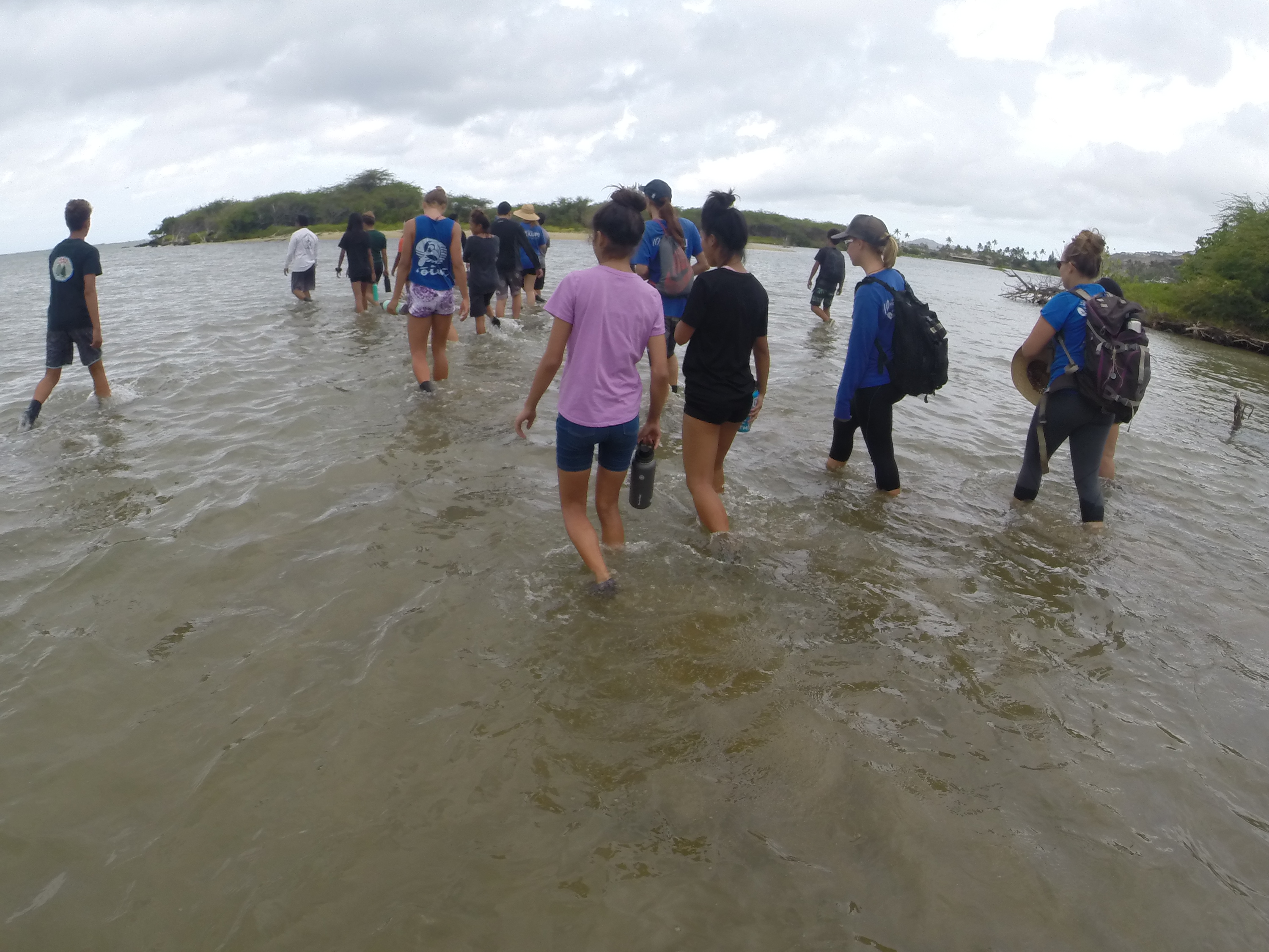 After wading across the lagoon to a beach on the Maunalua Bay side, the group spent time removing invasive algae which has impacted the lagoon and the bay for decades. This is a continuation of years of efforts by various groups to try and keep the invasive species under control. It’s hoped this will help develop a sense of environmental stewardship in the youth as they reach adulthood.