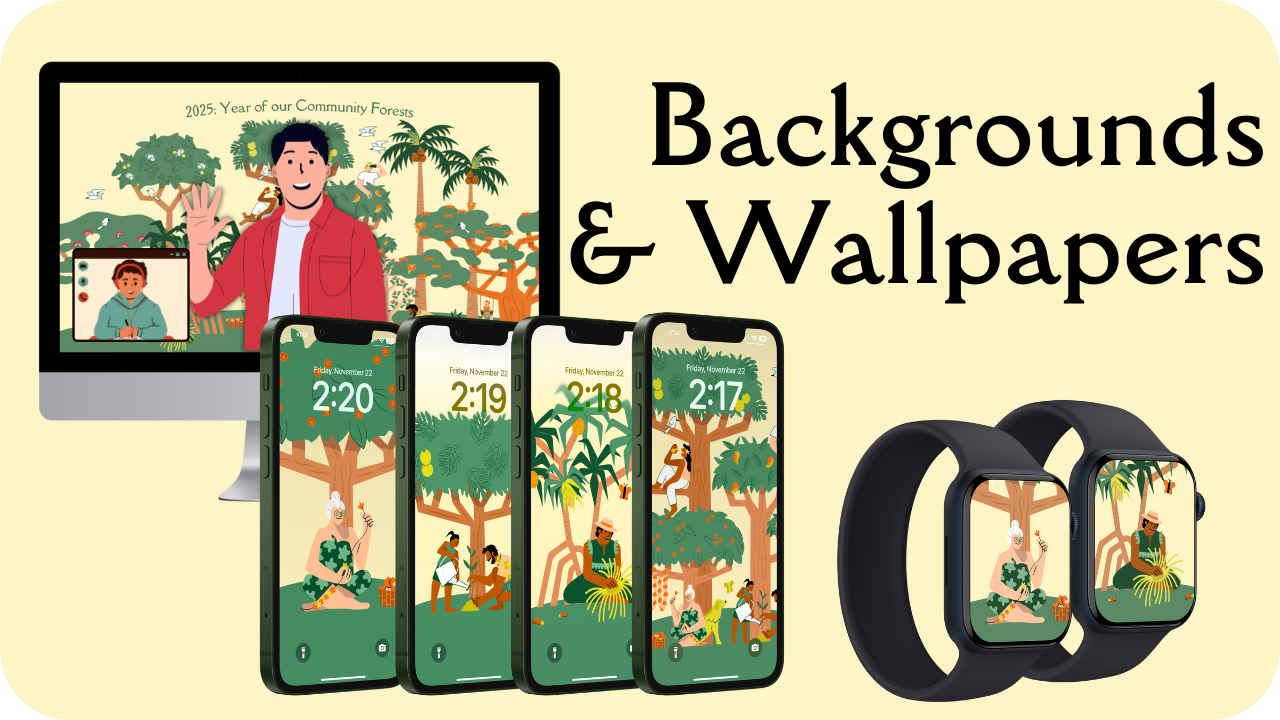 Bring trees along to your next virtual meeting. Bring the whole forest, or choose your favorite tree or activity. You can also use our backgrounds as computer wallpapers. We have vertical wallpapers for smartphones and watches.