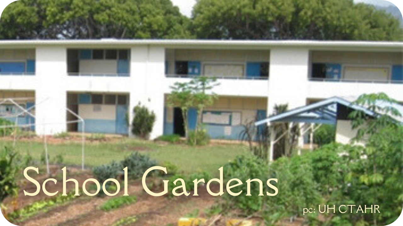 Hawaiʻi’s public schools can be home to fruit trees an other garden plants that allow your students to engage with nature and grow their own food. Learn more from the Kauaʻi School Garden Network, the Hawaiʻi Island School Garden Network, the UH College of Tropical Agriculture & Human Resources, and the Hawaiʻi Farm to School Hui.