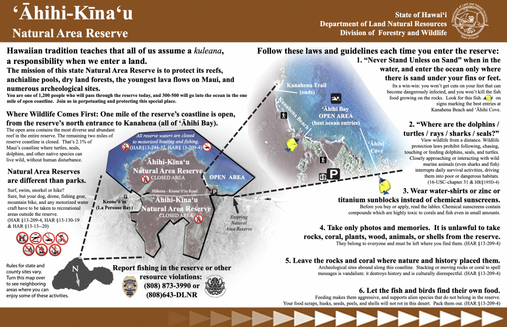 Help us to take care of ‘Āhihi-Kīna‘u and ensure this unique area is preserved for everyone to enjoy.  Click here or use the app below to report violations at the reserve. It will allow you to find your location on the map, upload photos, and add a short description.