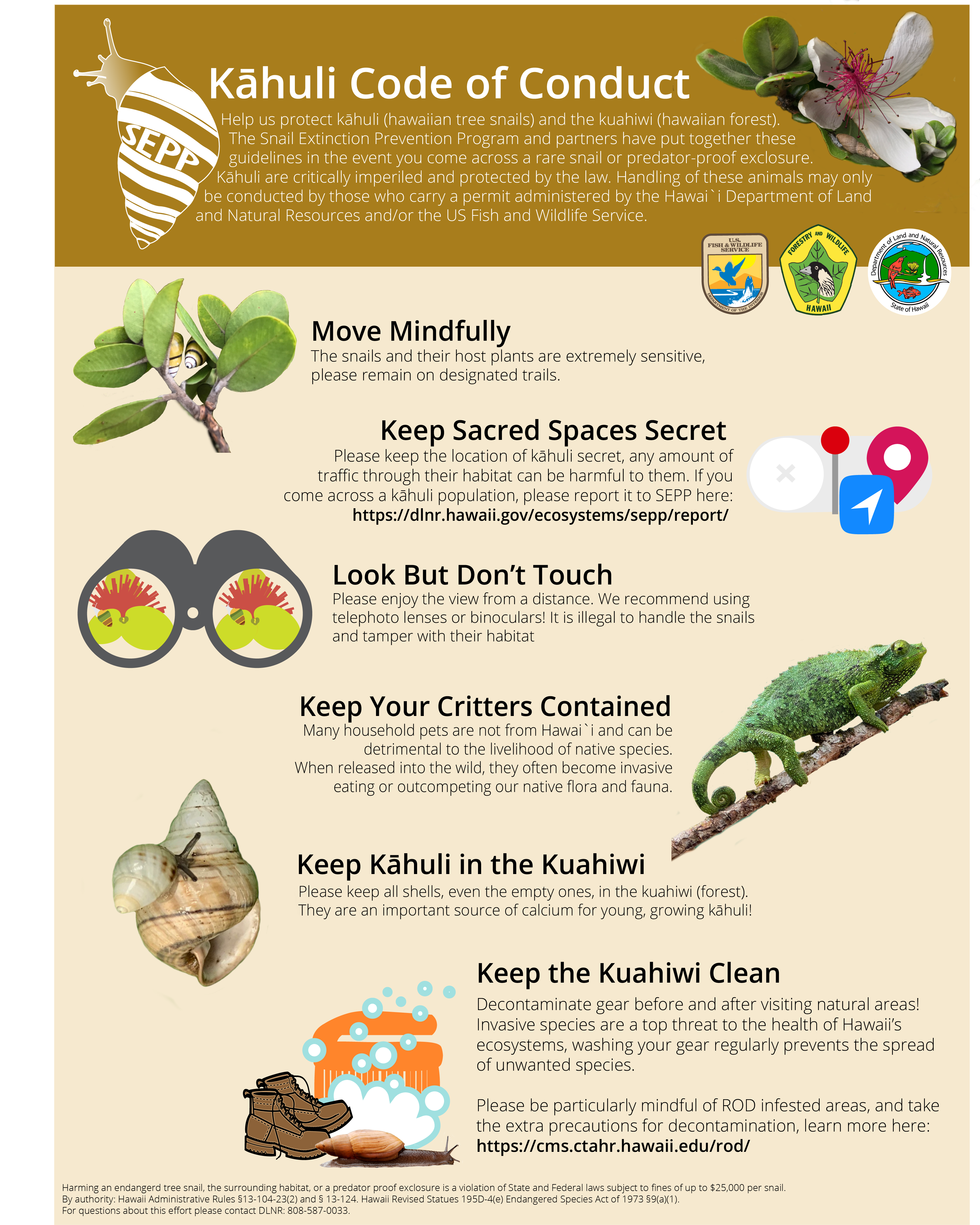 Hawai‘iʻs native snails need your help. While most snail conservation work takes place in remote locations or in controlled laboratories, there are several ways that Hawaiʻi’s residents and visitors can help protect these rare resources.
