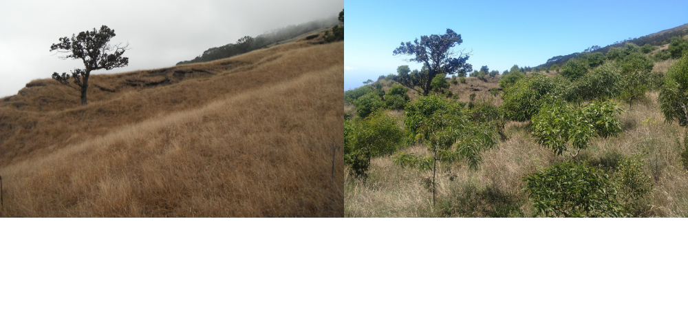 Nakula before planting (2013) and after planting (2017). PC: Brett Mossman