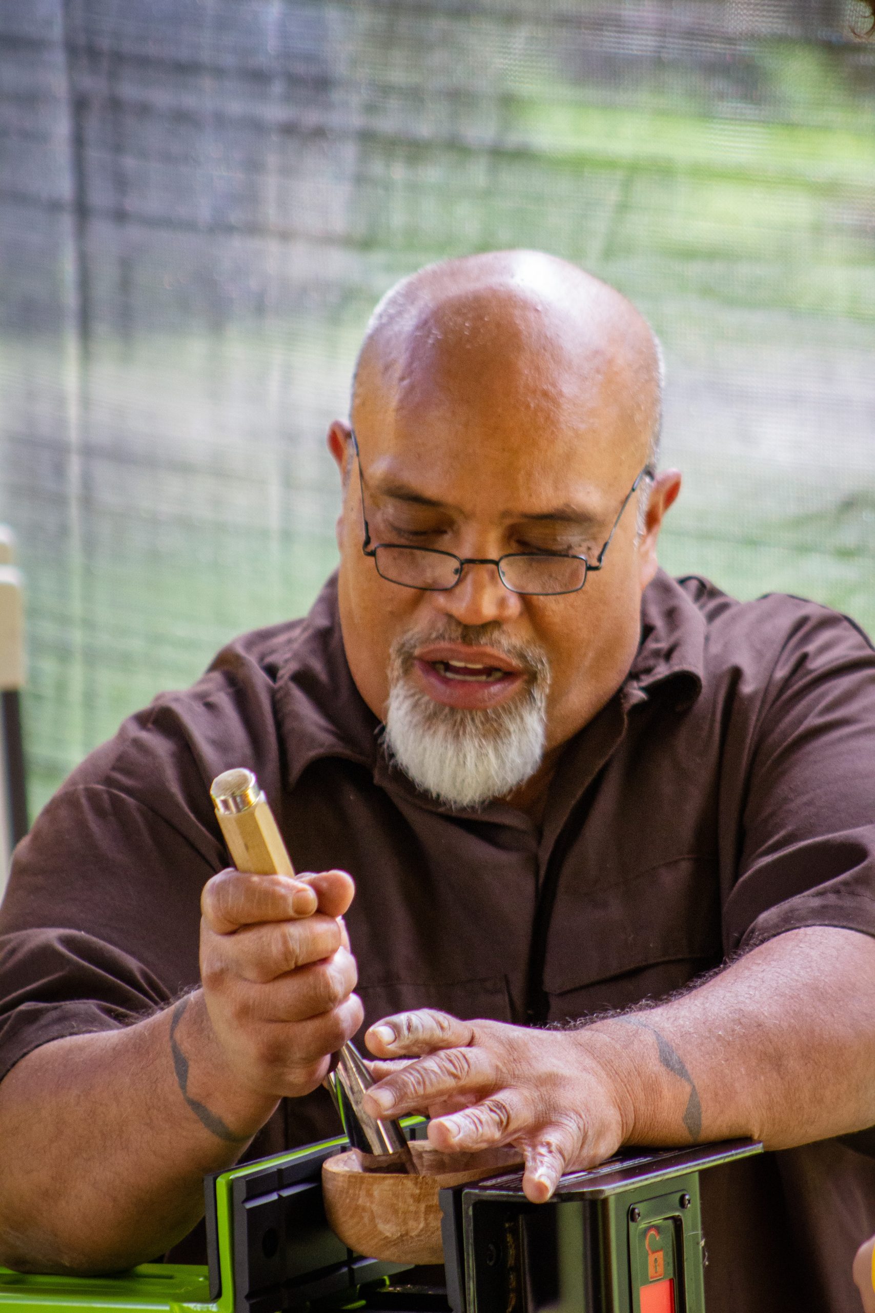 As artist-in-residence, Nalu led a series of workshops including “Carving Out Our Future: Growing Stewards and Healthy Forests Through the Practice of Kālai” where families learn to carve māna ‘ai (first food dishes for babies). Nalu continues to offer these workshops to communities.