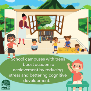 - School greenspace positively impacts student performance (Kuo et al, 2018; Kuo et al, 2021).