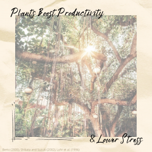 Lohr, V. I., C. H. Pearson-Mims, and G.K. Goodwin. 1996. Interior Plants May Improve Worker Productivity and Reduce Stress in a Windowless Environment. Journal of Environmental Horticulture 14:97-100.