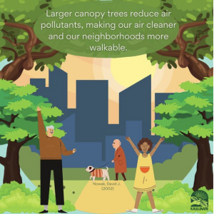 Each year 100 large, mature street trees help create healthier communities by removing 19 tons of carbon dioxide and 372 pounds of other air pollutants.