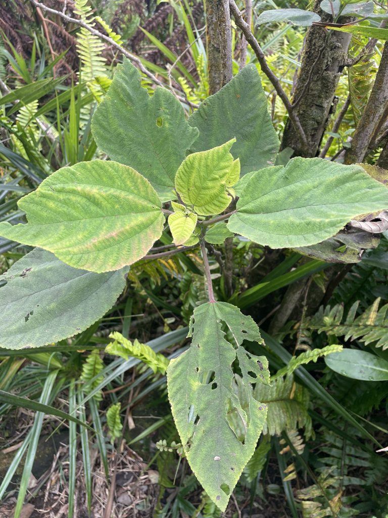 Māmaki is endemic to the Hawaiian islands and a part of the Urticaceae family. It is a fast-growing species and can be a shrub or a small tree with heights ranging from 1 to 6 m (6 to 20 ft) tall. Leaves on mature growth are 0.9 to 2.4 m (3 to 8 in) long and 0.3 to 1.8 m (1 to 6 in) wide, but leaves on young growth can be much larger. The small flowers form in small clusters close to the stem in the leaf axils. The flowers are unisexual with male and female flowers usually on the same plant. (“Pipturus Albidus,” n.d.). Early Hawaiians used mamaki wood to make clubs and kapa beaters. (“Māmaki (Pipturus Albidus),” n.d.). Māmaki leaves are used medicinally in tea.