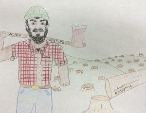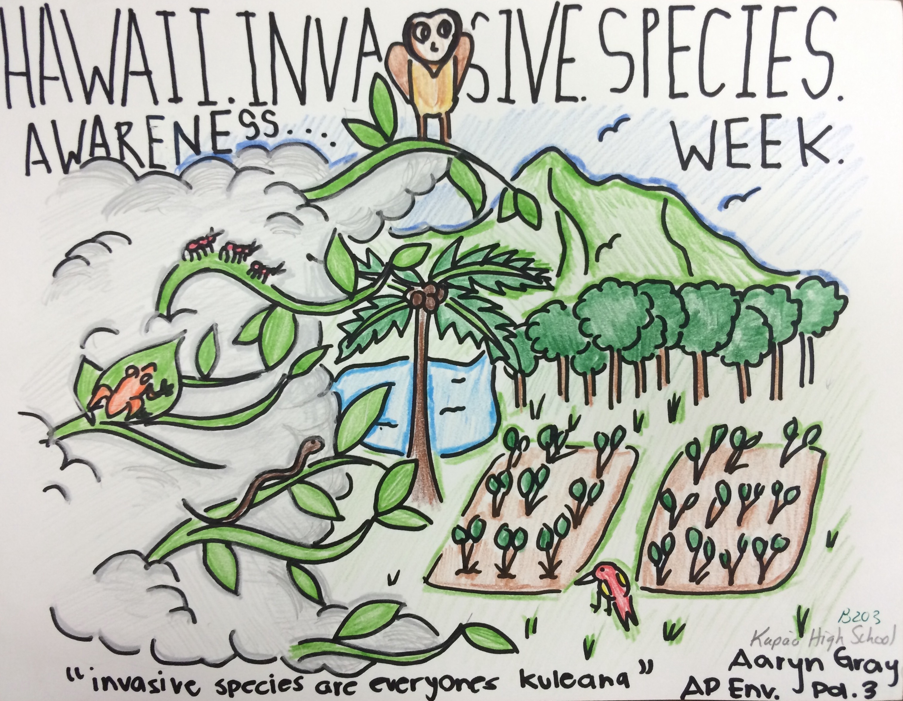 Submitted by Kapaa High School, Kauai for Hawaii Invasive Species Awareness Week in 2015 illustrating the theme