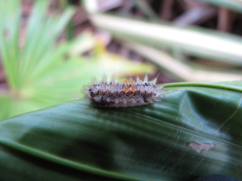 Stinging nettle caterpillar on Chinese fan palm; Photo by Forest & Kim Starr