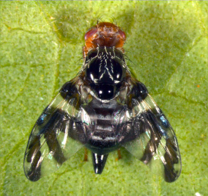 • Adult female Cecidochares connexa, proposed biocontrol agent.
