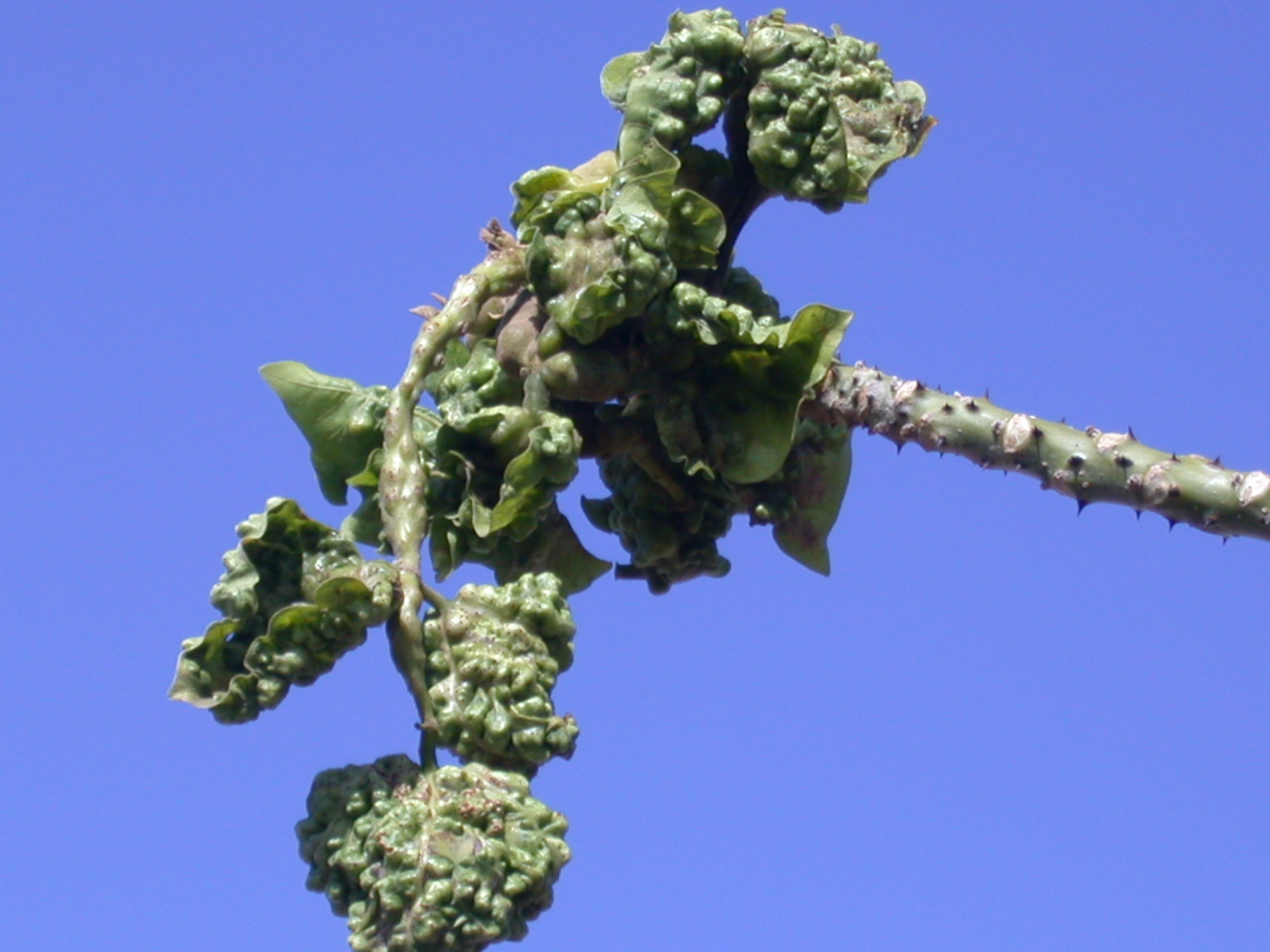 Damage on wiliwili caused by erythrina gall wasp (Quadrastichus erythrinae)