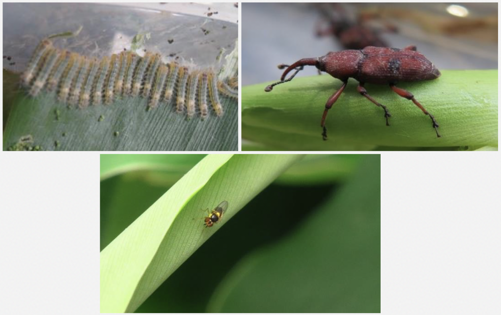 Potential natural enemies: Artona sp., Metapriodictes sp., and Merochlorops sp.