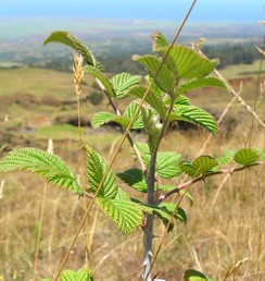 Both yellow Himalayan raspberry (Rubus ellipticus var. obcordatus) and Mysore raspberry (Rubus niveus) are Hawaiʻi state listed noxious weeds that form impenetrable thickets of stems covered in sharp thorns. These sprawling brambles threaten native forests and displace native plant species, including the native Hawaiian raspberry, ‘akala (Rubus hawaiiensis).