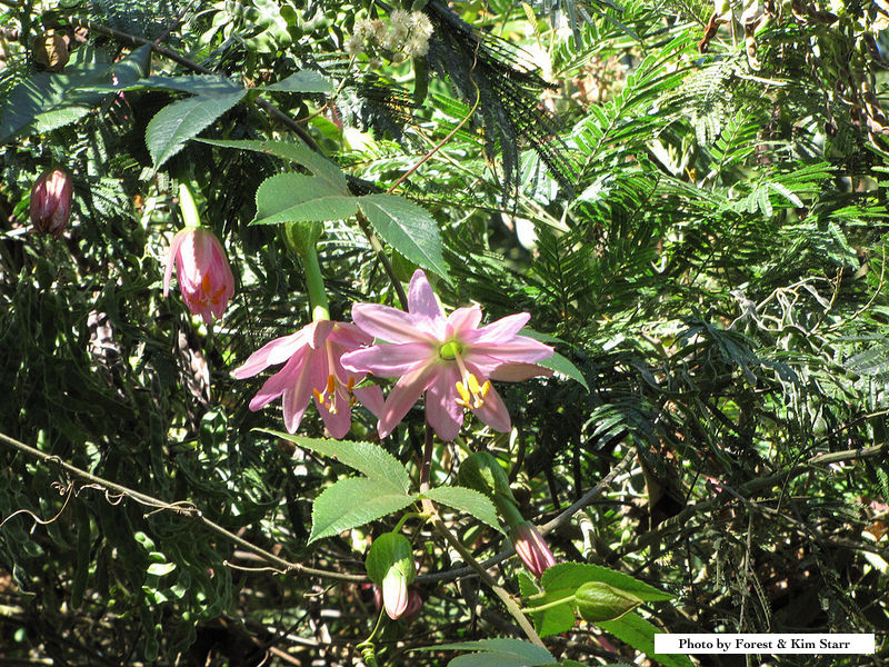 • Found in disturbed areas, open fields and around fresh water habitats. P. tarminiana will readily climb and smother trees. Fruit provides a food source for non-native animals. Seeds are dispersed by birds and feral pigs. Dense curtains of the vine can extend to the ground from canopy branches, sometimes causing branches to break and toppling trees during storms. Where the canopy has been opened, dense mats of vines also cover the understory trees and shrubs and inhibit regeneration of the native trees (Mueller-Dombois et al. 1980).