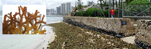 • Oahu: Introduced to Waikiki and Kaneohe Bay in 1974. Can be found in Kaneohe Bay and from Maunaloa Bay to Pearl Harbor. Volunteers are used to help clean some locations of this seaweed. Click here for more information: alien algae clean-up events (this should link to the Alien algae Clean-up page)
