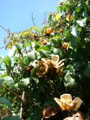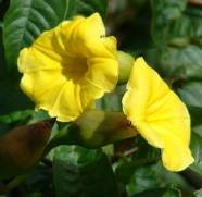 - Woody, climbing vine with yellow, funnel-shaped flowers that open in sunlight and close when cloudy or dark