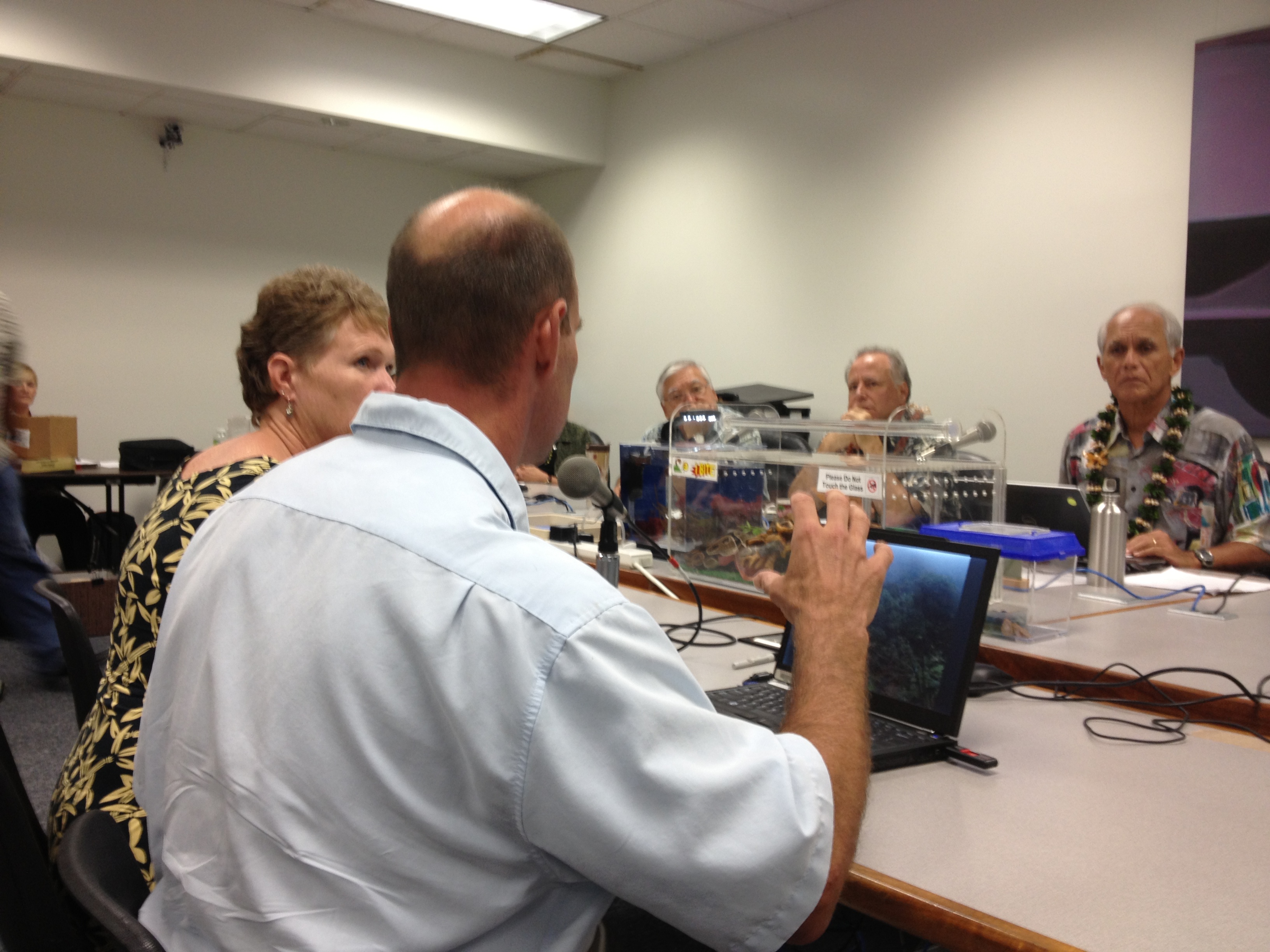 In the days before the opening of the 2013 State legislative season, HISC Council members and partners presented to a variety of legislators in a informational briefing on invasive species hosted by Senator Mike Gabbard, chair of the Senate Committee on Energy and Environment. Committee vice chair Senator Russell Ruderman was also in attendance, as were Senators Laura Thielen, Susan Chun-Oakland, Clarence Nishihara, and Representative Dee Morikawa.