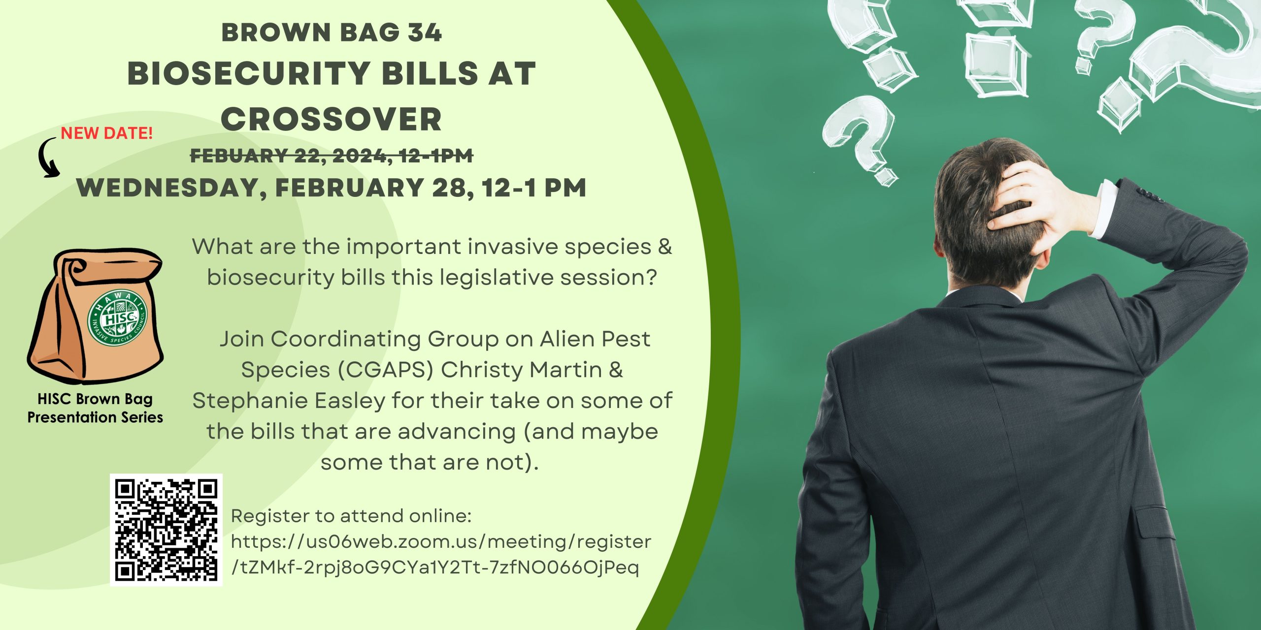 As the legislative session progresses, understanding the implications of proposed biosecurity bills becomes crucial for those dedicated to safeguarding our islands’ biodiversity. The Hawaiʻi Invasive Species Council (HISC) is thrilled to announce a special edition of our Brown Bag Presentation Series focused on this very topic.