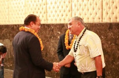 HISC co-chair William J. Aila, Jr. (right, DLNR) meets Rolph Payet, Seychelles Minister of Environment and Energy