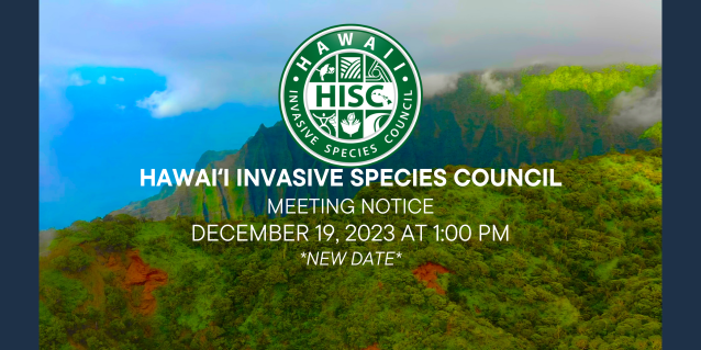 Posted on Nov 28, 2023 in NewsThe Hawai’i Invasive Species Council (HISC) cordially invites all members and interested parties to attend its upcoming council meeting. The meeting will be held on December 19, 2023, at 1:00 PM at the Conference Room 16; Hawaiʻi State Capitol 415 S Beretania St., Honolulu, HI 96813. Virtual attendance options also available via Zoom and live streaming on the HISC YouTube channel.