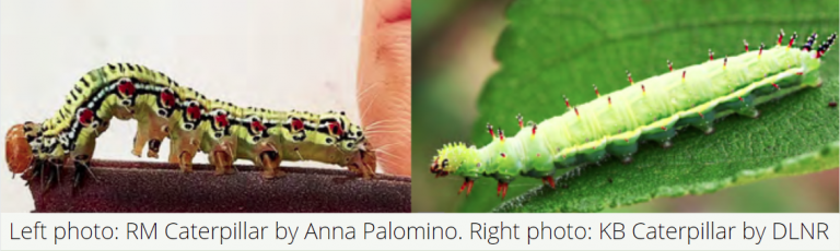 - Learn to recognize the differences between the caterpillars of Ramie moth, Kamehameha butterfly, Udea stellata (another native species) and Green garden looper (invasive species). This is to make sure you don’t mistakenly kill native caterpillars. (See the differences here)