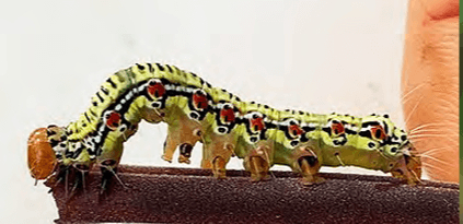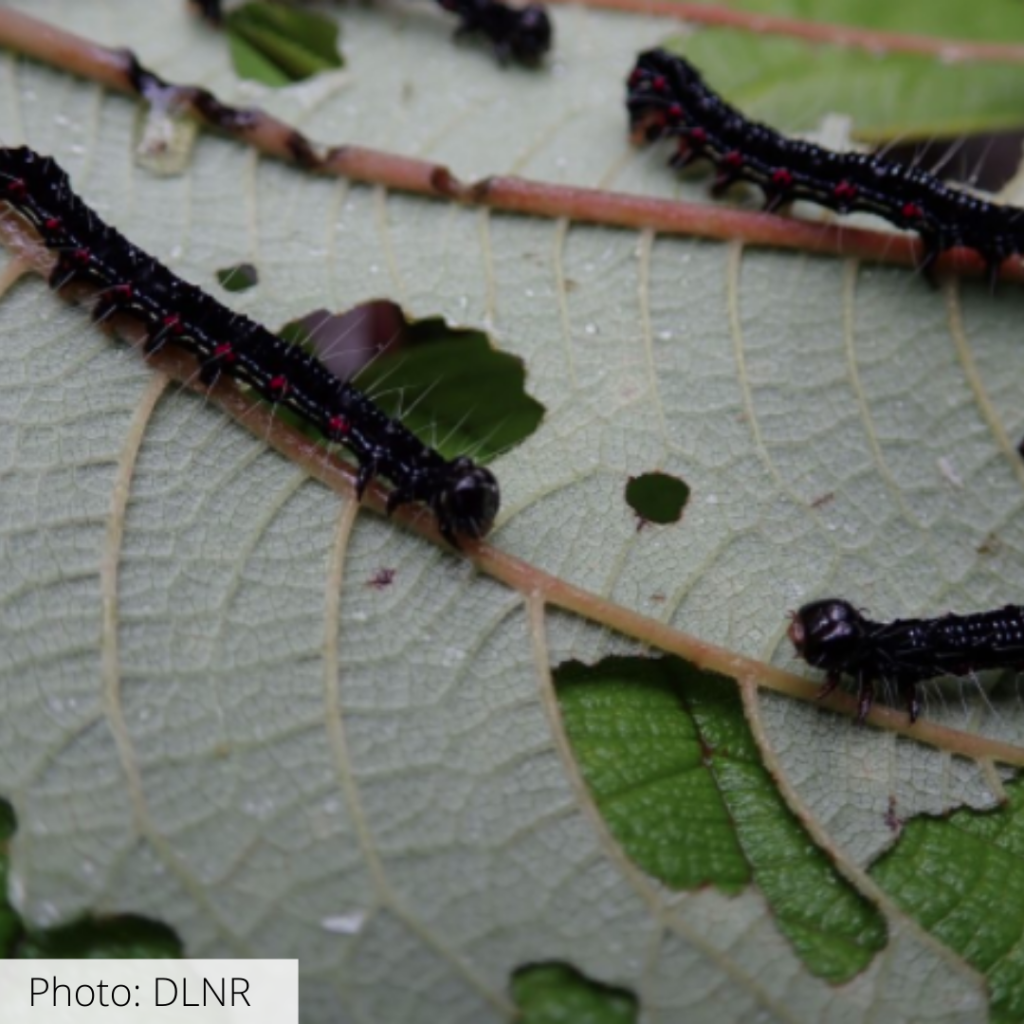 - If large amounts of feeding damage is observed on your māmaki leaves, check the area for caterpillars. Early instar larvae move quickly throughout the plant and can drop to the group and spread to neighboring areas.