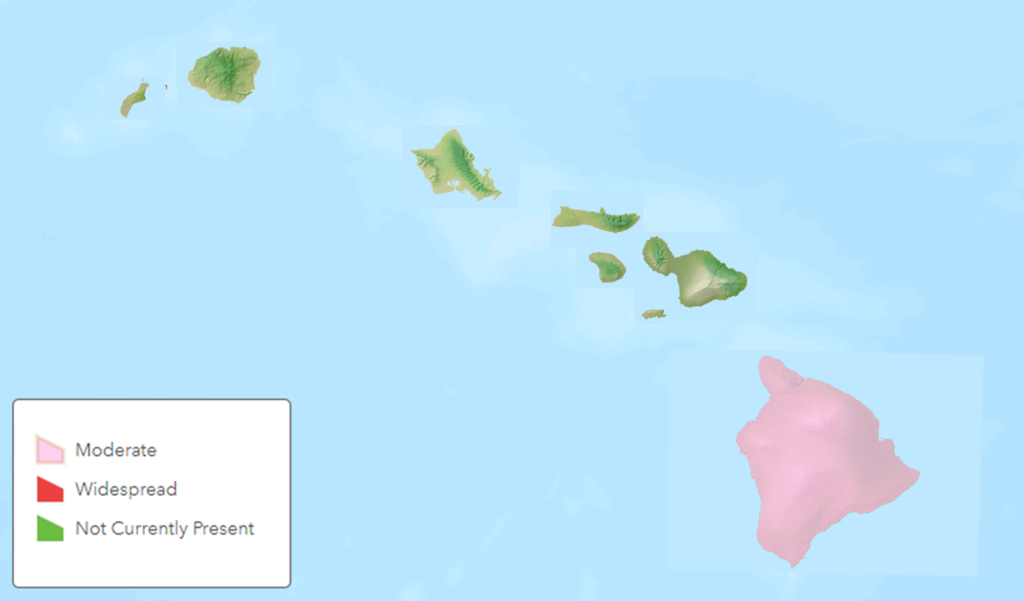 - Hawaiʻi Island residents should be alert to unexplained patches of dead grass they encounter on their properties – if they can’t be easily explained by other environmental factors they should be reported. Report to 643pest.org with photos.