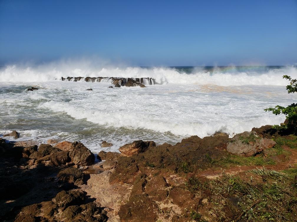 The area within the Pūpūkea MLCD that stretches from behind the Sunset Beach fire station over to Kulalua Point (the point between Shark’s Cove and Keiki Beach) is known as Kapo‘o.  Kapo‘o gets its name from the loud echoing or booming sound of the waves that crash onto the exposed ancient reef, and during the winter surf season is the perfect time to listen and watch for these explosive displays.