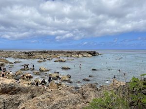 Within Kapo‘o is a place of peace and safety; a sanctuary functioning much like a nursery: a pu‘uhonua for marine life.  Many of us have experienced this protected place whether it was transiting by and seeing it; taking our keiki to play in its shallow waters; or perhaps you’ve taken the time to throw on a mask and snorkel to explore its shallow marine habitat.  The Kapo‘o Tidepool, commonly referred to as the Pūpūkea or Shark’s Cove Tidepool, has served as an iconic landmark for those that live in the community or have spent time in the area.