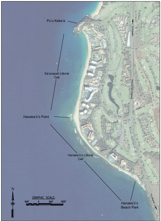 The State of Hawaiʻi and the Kāʻanapali Operations Association, Inc. have developed a plan to ensure the viability of this sandy coastal resource, which includes both beach restoration and berm enhancement. Beach restoration is proposed for the section of beach between Hanakaʻōʻō Beach Park and Hanakaʻōʻō Point (“Hanakaʻōʻō Littoral Cell”), and beach berm enhancement is proposed for the section of beach between Hanakaʻōʻō Point and Puʻu Kekaʻa (“Kāʻanapali Littoral Cell”) (Figure 1). The proposed project is intended to mitigate the impacts of rising water levels and coastal erosion, which are increasing with global sea level rise.