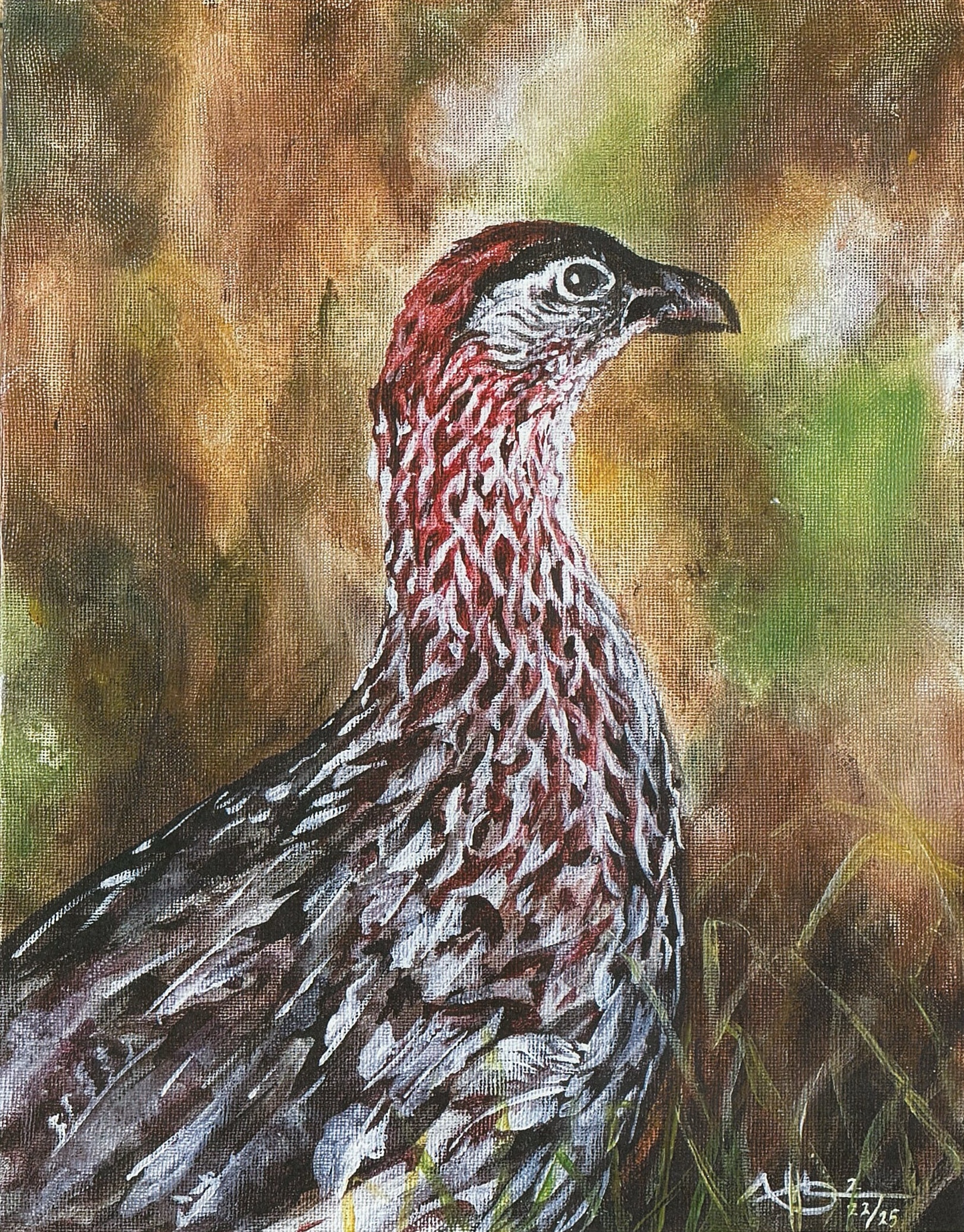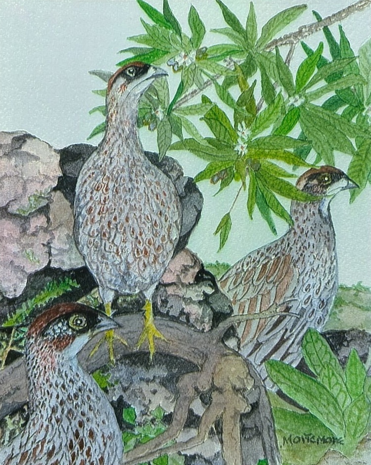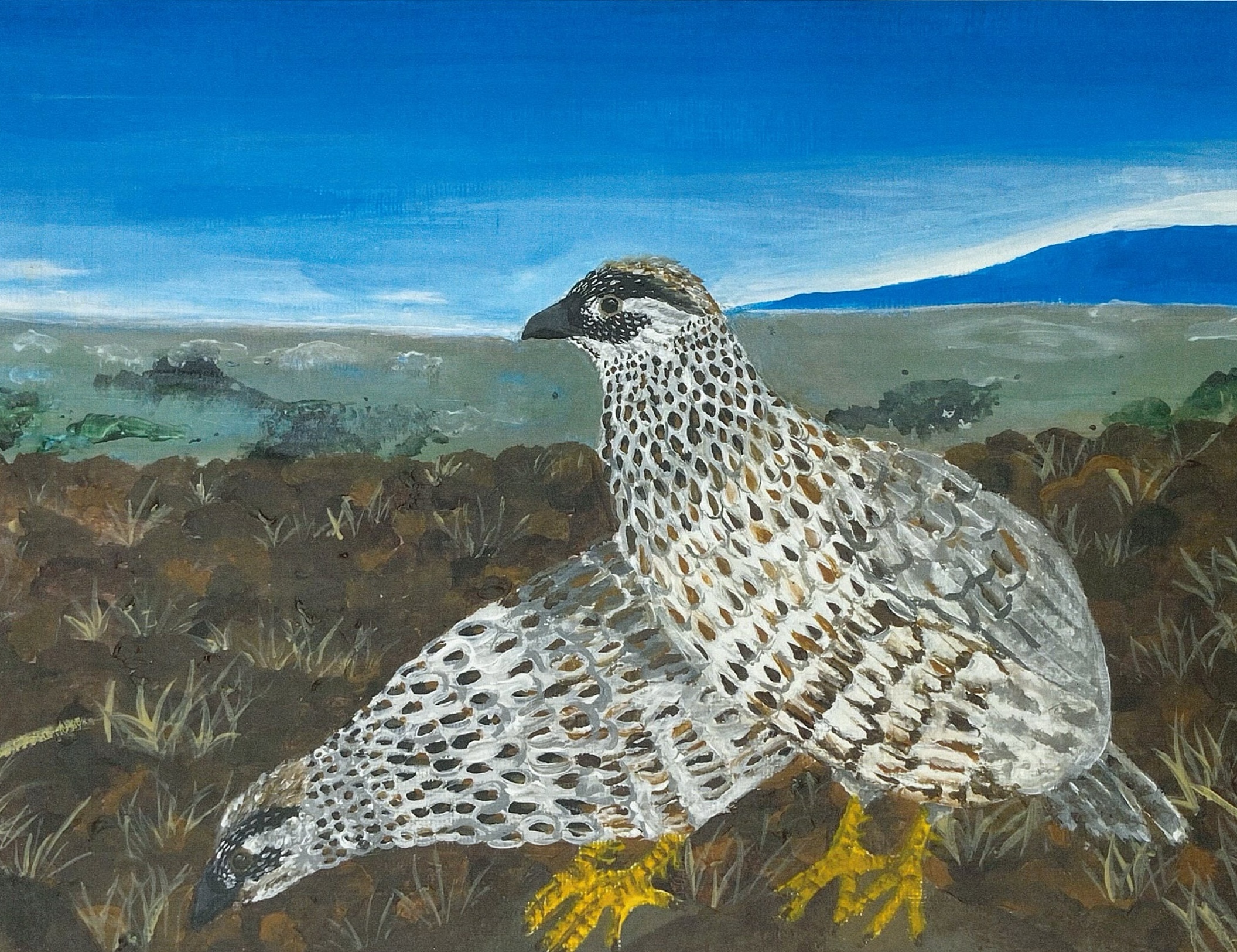 Artwork was requested this year featuring our Erckelʻs Francolin game birds. Please refer to our Division of Forestry and Wildlife: Outdoor Recreation Hunting webpage for more information about hunting in Hawaiʻi. The contest winner for the Game Bird Stamp this year was David K. Hayes.