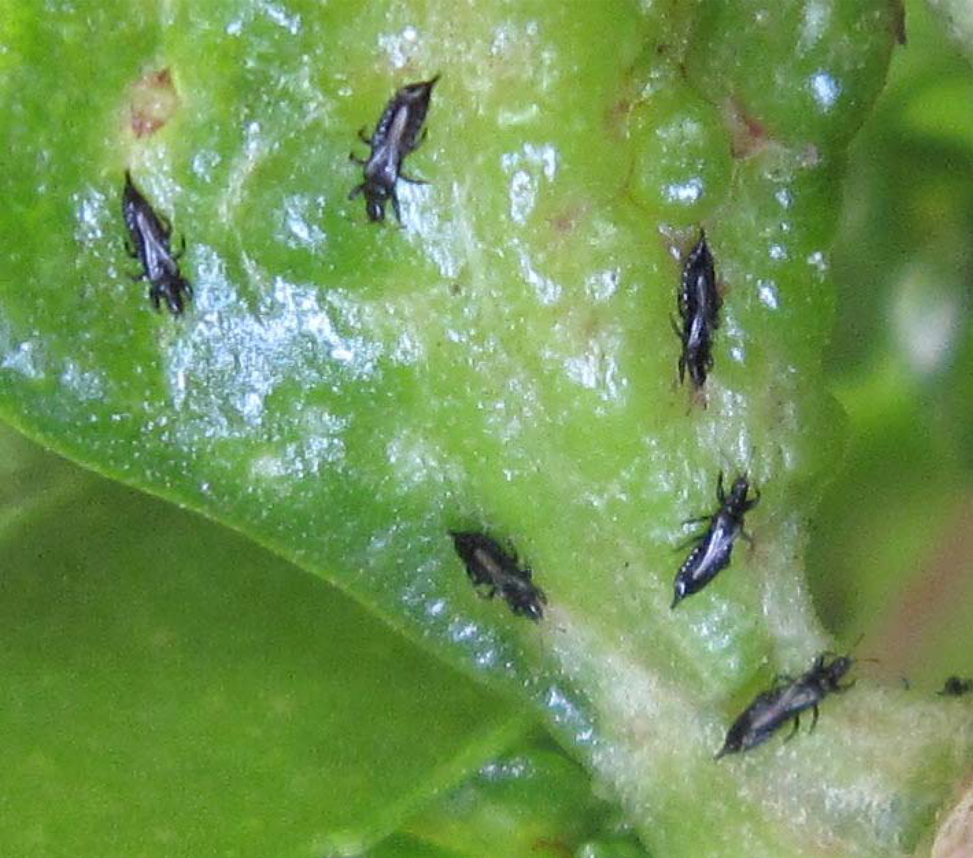 Invasive insects also threaten the plants and animals in this forest. Myoporum thrips feed on young leaves of naio trees, a common tree in the high-elevation dry forest. These thrips cause branch die-back, and can eventually cause tree death. In addition, non-native species of parasitic and predatory wasps and ants may reduce the availability of insect food sources for Palila.