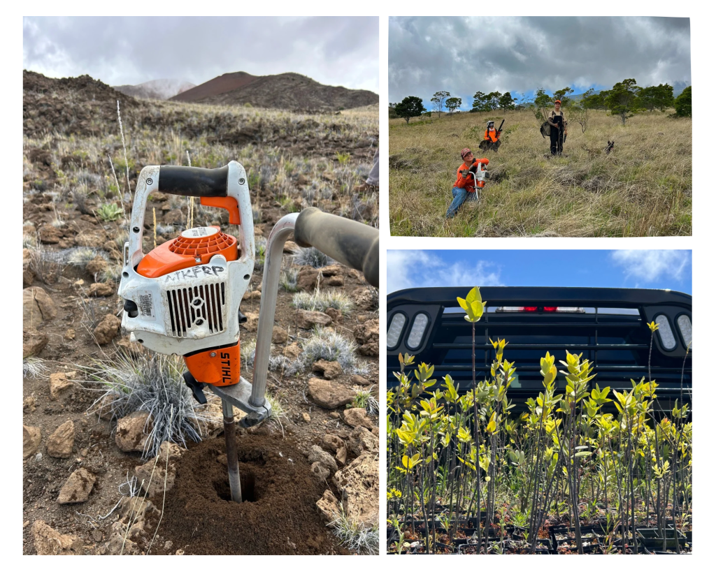 Goal: To allow the community and visitors to connect with the mauna. Out-planting provides the opportunity to help our restoration team with fire management, creating new forest, creating future forest, and providing habitat/ food sources for Palila.